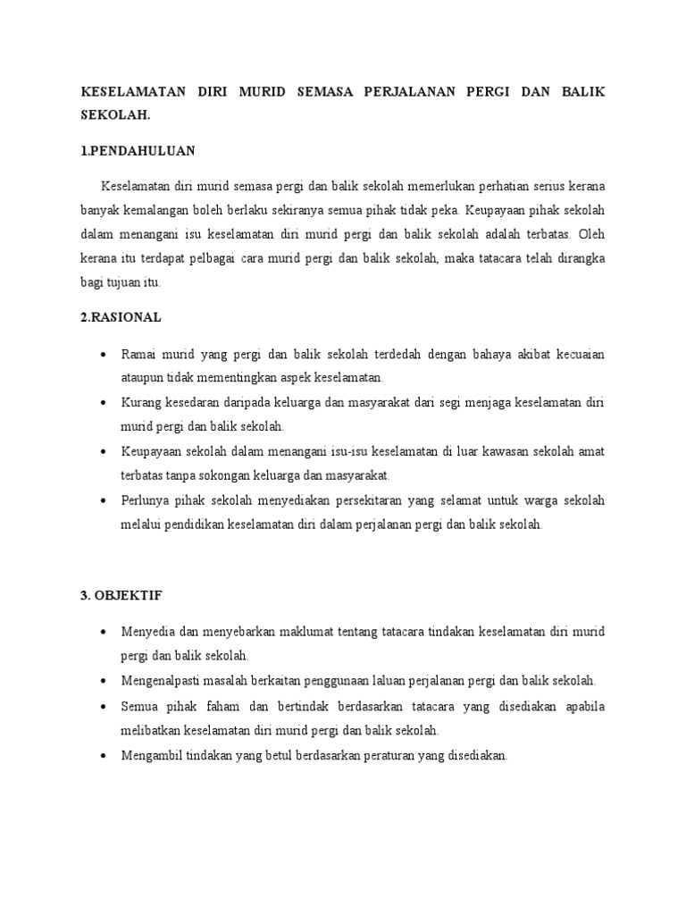 Keselamatan Diri Murid Semasa Perjalanan Pergi Dan Balik Sekolah Pdf