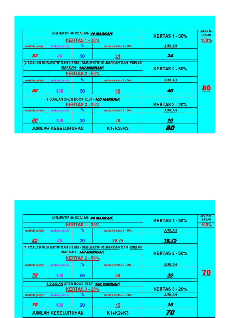 Pengiraan Markah Sejarah K1 K2 K3 Pdf